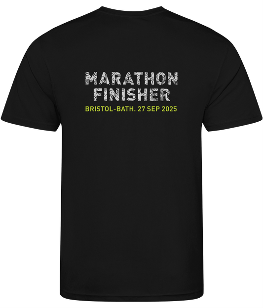Men's Black Active T Shirt Bristol-Bath Marathon Finisher with emblem