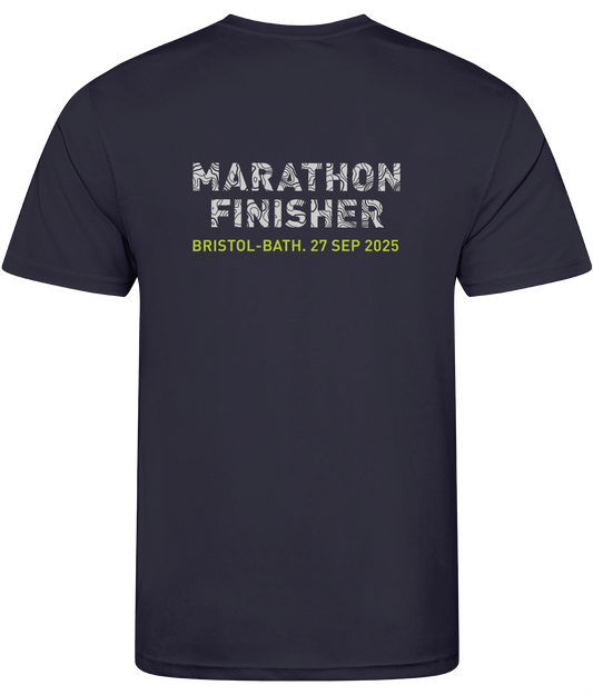 Men's Navy Active T Shirt Bristol-Bath Marathon Finisher with emblem