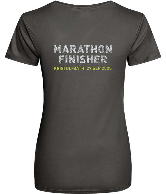 Women's Grey Active T Shirt Bristol-Bath marathon Finisher with emblem