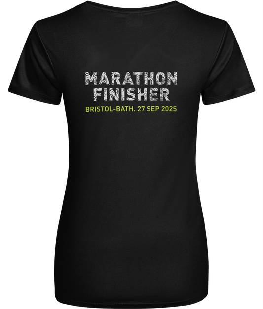 Women's Black Active T Shirt Bristol-Bath marathon Finisher with emblem