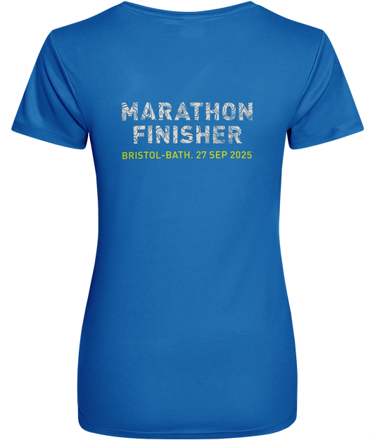 Women's Sapphire Blue Active T Shirt Bristol-Bath Marathon Finisher with emblem